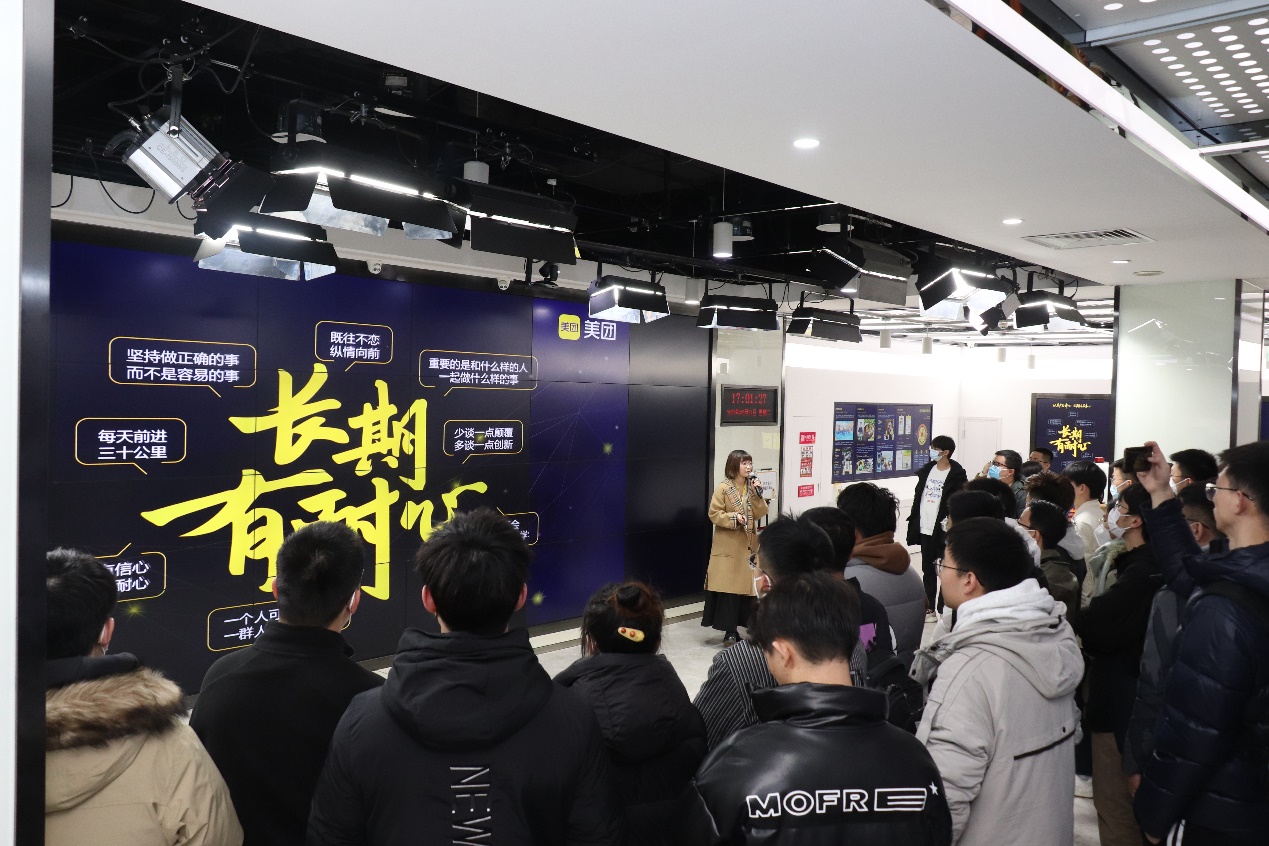 师生团队参观了美团综合指挥中心,聆听了美团工作人员对于美团发展历程、服务内容、企业文化和社会价值的介绍。之后,结合师生计算机专业背景,工作人员展示了美团大脑、袋鼠力量、智能配送车、无人机和一系列智能项目,师生团队对于美团在相关领域的科技实力有了更新的认识。参观结束后,美团校招组工作人员向同学们介绍了美团校招的相关情况,传达了美团对于校招生能力培养和自我价值实现的重视,同学们也对日常实习、简历筛选等方面问题与工作人员进行了沟通交流,活动在热烈的气氛中顺利结束。