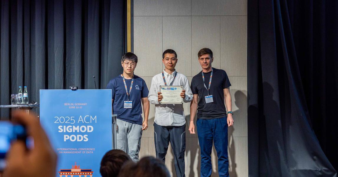 2025年6月,数据库领域全球顶级学术会议SIGMOD 2025在德国柏林落幕。经过激烈角逐,北理工计算机学院硕士研究生项黎明、封璟,本科生邵艺博、侯佳希以及来自西安电子科技大学的俞泳泽组成的Kirara队在秦宏超、李荣华、王国仁老师的指导下,获得了编程竞赛全球亚军(Programming Contest Runner Up Award),这是北理工学子首次参加该赛事。本次竞赛冠军由慕尼黑工业大学(TUM)团队夺得,清华大学团队位列第三。