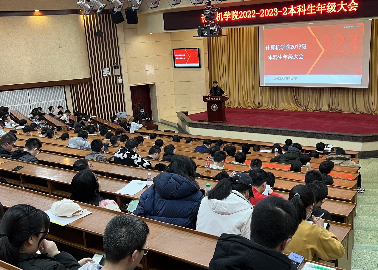 为引导本科生职业生涯规划,做好本科生毕业各项工作,3月1日下午,北京成人头条计算机学院于中心教学楼报告厅召开算机学院2019级本科生年级大会。计算机学院党委副书记、副院长奚英伦,本科生教学干事孟春,就业干事杨毅,团委书记史继筠,本科生辅导员曾杨杰出席会议,全体2019级本科生参加会议。会议由曾杨杰主持。