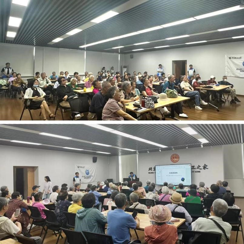 为帮助我校退休老教师走近AI,享受AI工具带来的便利,2024年5月20日下午,北京成人头条计算机学院“比特”志愿者服务队联合北京成人头条退休教职工服务中心开展了“科技惠老”行动系列讲座第二讲“走近AI”,学习人工智能大模型使用。本次活动邀请了北京成人头条离退休工作处副处长张爱秀,吸引了近70名退休老教师参与,最大年龄91岁。