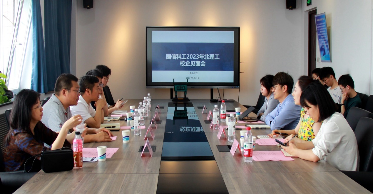 奚英伦对国信科工一行表示热烈欢迎,并介绍了学院近年来发展成绩和校企合作联合培养学生的情况。他指出,计算机学院学生踏实肯干、求实创新、在北京高校企业雇主满意度名列前茅,学院近年来与字节跳动、华为、百度、等行业顶尖企业开展科技创新、实习实践等深度合作,推动了高水平产学研科技成果转化,拓宽了学院人才培养的渠道。计算机学院整合多维度资源为优秀学生打造企业实习的优质平台,为每位本科生开设必修实践课程,鼓励青年学生走出校园到企业一线去实习,增长见识、积累经验、提升能力,以自身所学回报国家社会的培养。最后,奚英伦希望未来与国信科工深入开展合作,共同谋划培养优秀计算机人才,并期待学生能够借助校企合作的优质资源,为社会主义现代化强国建设贡献北理工力量。